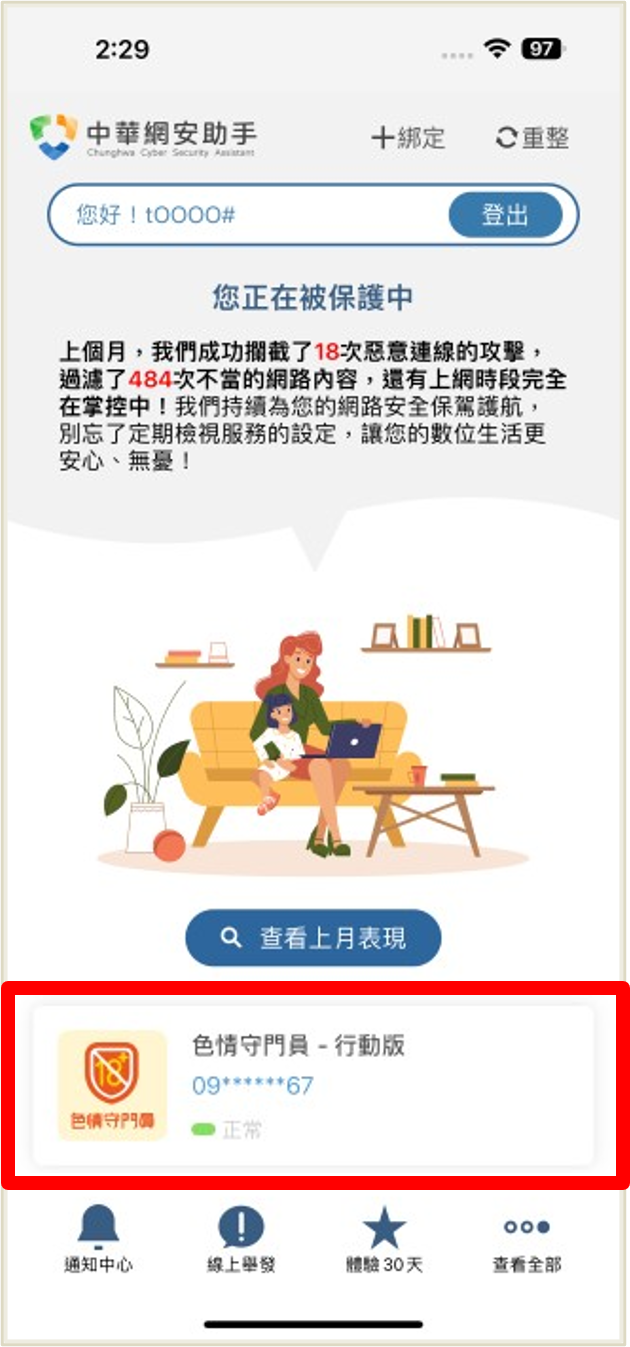下載並登入中華網安助手APP,隨時設定攔阻類別與瀏覽攔阻成效,讓色情守門員更方便好用,上網更安心!