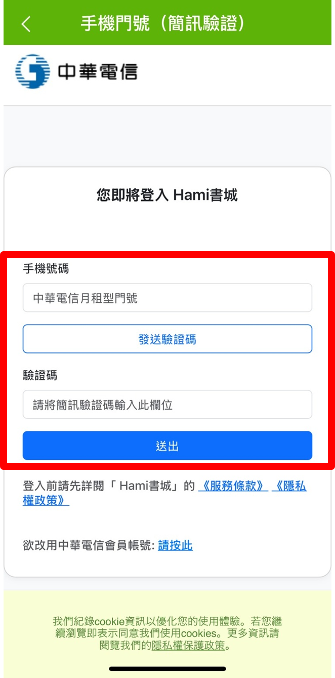 請輸入你已申請此加值服務之中華電信月租型行動門號