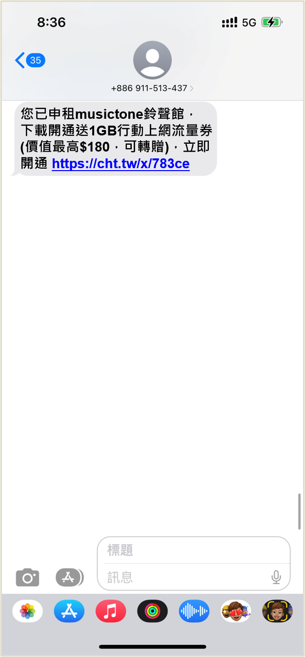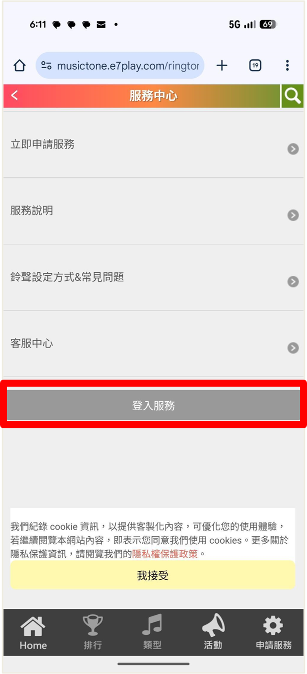 服務申辦完成將收到開通簡訊,點擊簡訊連結進入服務網站