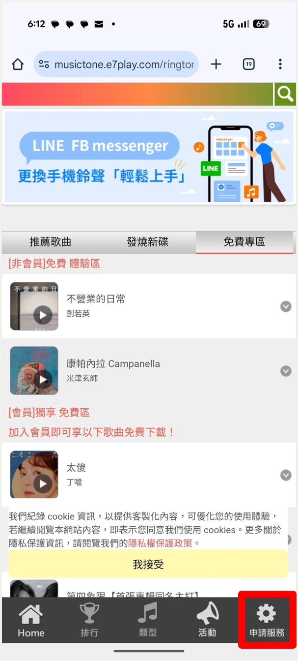 請輸入你已申請此加值服務之中華電信月租型行動門號